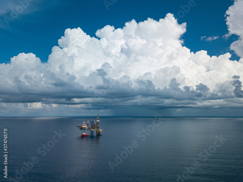 Naklejka premium Aerial view from a drone of an offshore jack up rig at the offshore location...