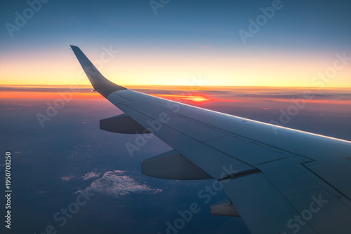 © ValentinValkov, Fototapeta premium Aerial view from the plane over fluffy clouds