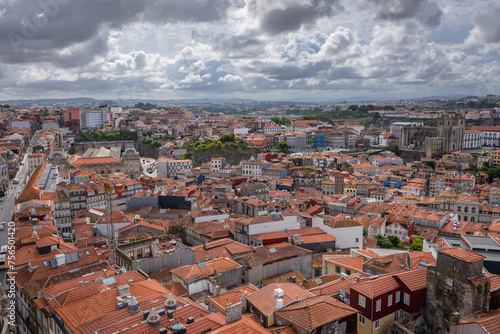 © Fotokon, Obraz premium Aerial view from tower of Clerigos Church in Porto city, Portugal with Se Cathedral on right side