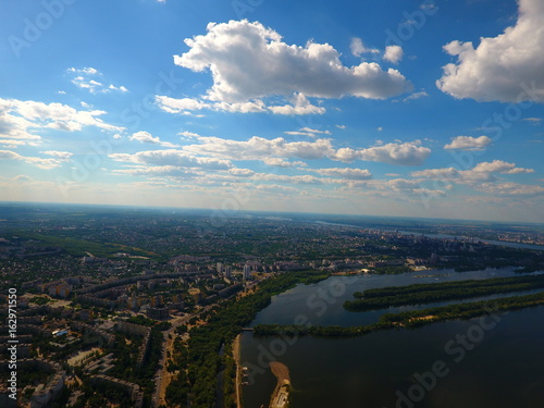 © PhotoStocker, Fototapeta premium Aerial view. Houses and river in the city Dnepr, Ukraine.