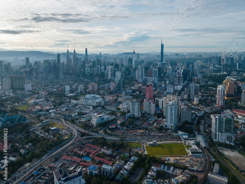 Fototapeta premium Aerial view Kuala Lumpur from Titiwangsa in morning