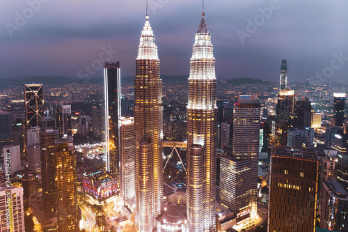 Fototapeta premium Aerial view Kuala Lumpur skyline at night