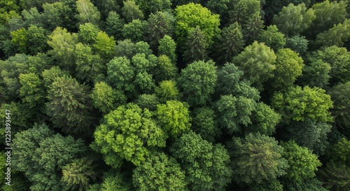 Naklejka premium Aerial View Lush Green Forest Canopy Summer