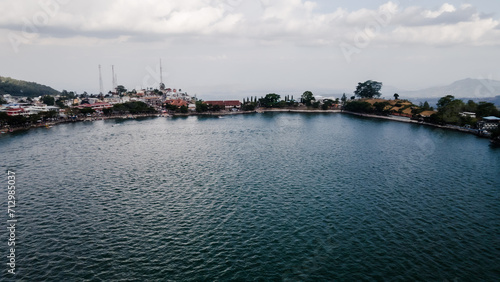© Nasrul Ma Arif, Naklejka premium aerial view, natural tourist atmosphere of Sarangan Lake, Magetan, East Java, Indonesia. Which is a popular tourist attraction.