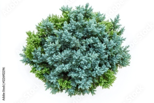 © kucret, Fototapeta premium Aerial view of a blue and green juniper shrub, isolated on white background. Ideal for landscaping design