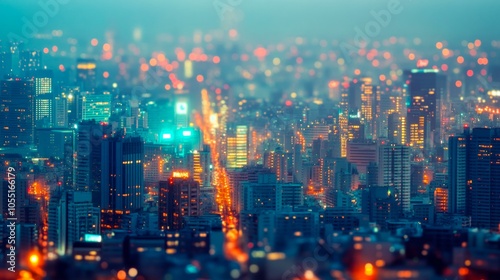 Fototapeta premium Aerial view of a bustling urban cityscape with skyscrapers and busy streets...