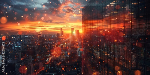 © tanapat, Fototapeta premium Aerial view of a bustling urban hospital during sunset