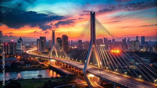 © Danicha, Fototapeta premium Aerial View of a Cable-Stayed Bridge in Sao Paulo, Brazil, South America
