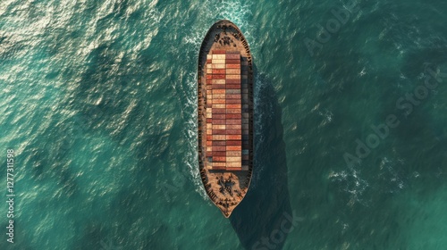 Obraz premium Aerial View of a Cargo Ship Sailing on the Ocean