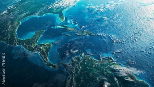 Fototapeta premium Aerial view of a Caribbean island chain - High angle shot showcasing the...
