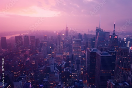 © Francesco, Obraz premium Aerial View of a City Skyline at Dusk