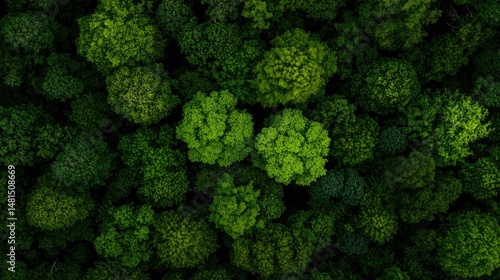 © Berkah1789, Naklejka premium Aerial view of a dense forest filled with evergreen trees