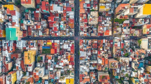 © Penatic Studio, Obraz premium Aerial View of a Densely Populated Urban Area with Intersecting Streets