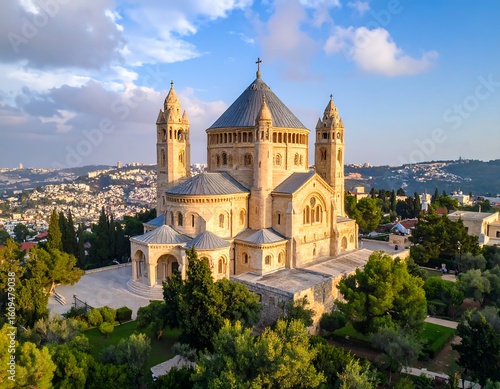 © David, Fototapeta premium Aerial view of a historic church nestled in a hillside town