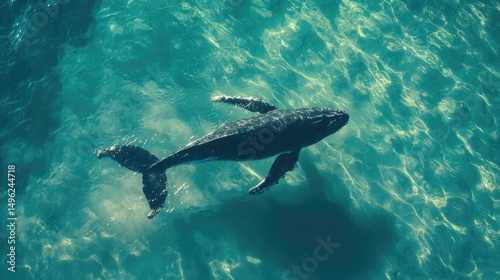 Obraz premium Aerial View of a Humpback Whale in Turquoise Ocean Waters