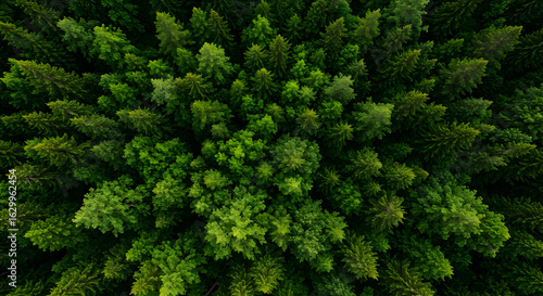 © Dzikri Design, Naklejka premium Aerial View of a Lush Evergreen Forest
