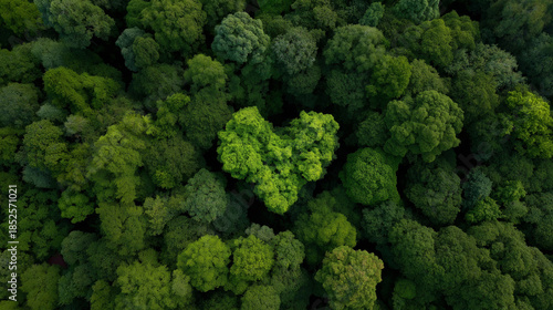 Naklejka premium Aerial view of a lush green forest forming a heart shape symbolizing nature...