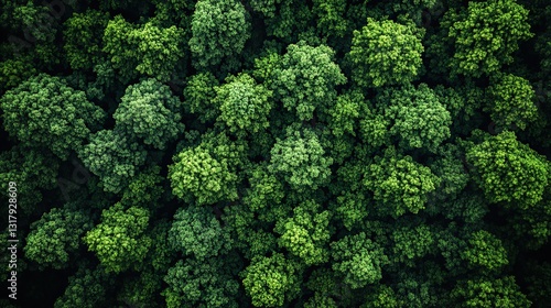 © Emile, Naklejka premium aerial view of a lush green forest in spring