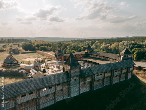 © Hennadii, Fototapeta premium Aerial view of a medieval wooden fortress