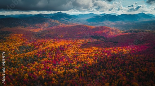 © IMAGINIAC, Fototapeta premium Aerial View of a Mountain Range with Fall Foliage