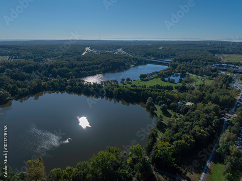 © Krzysztof, Obraz premium aerial view of a pond in Katowice