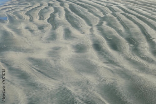 Obraz premium Aerial view of a pristine sandy beach with grayish-white sand