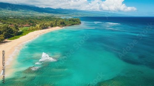 Fototapeta premium Aerial view of a pristine tropical beach featuring sandy shoreline and...