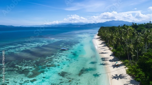 Fototapeta premium Aerial View of a Pristine Tropical Beach with Palm Trees and Turquoise Water...