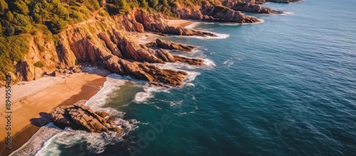 © gufron, Obraz premium Aerial View of a Rugged Coastline with Foamy Waves
