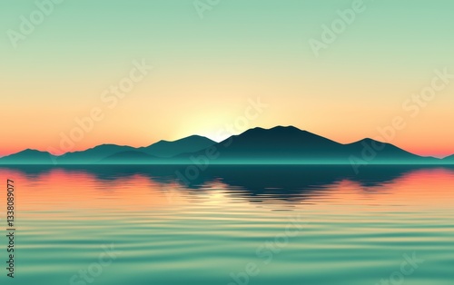 © Diffin, Fototapeta premium Aerial view of a serene mountain range with a tranquil lake in the foreground.