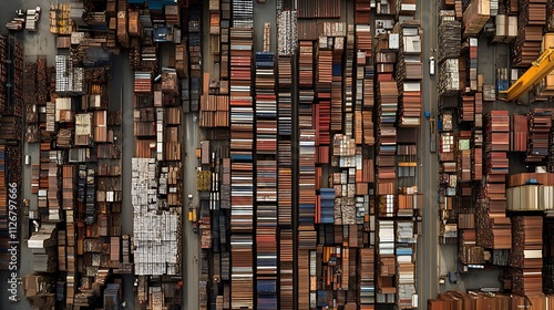 © Ibnu, Fototapeta premium Aerial View of a Shipping Container Yard Stacked High