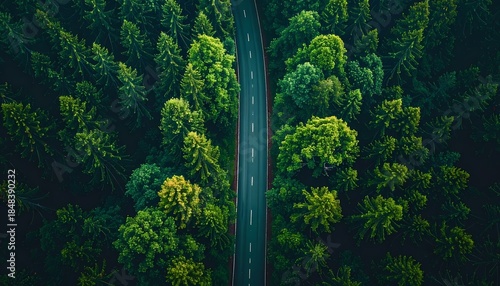 © gilz_r, Obraz premium Aerial View of a Straight Road Cutting Through a Dense Green Forest.