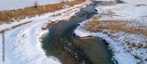 Obraz premium Aerial View Of A Stream In The Winter