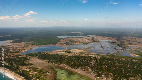 Fototapeta premium Aerial view of Agricultural plants among the jungle. Rural landscape. Sri Lanka.