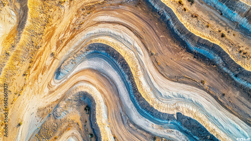 © Khlaing, Obraz premium Aerial view of an arid desert landscape with sand patterns.