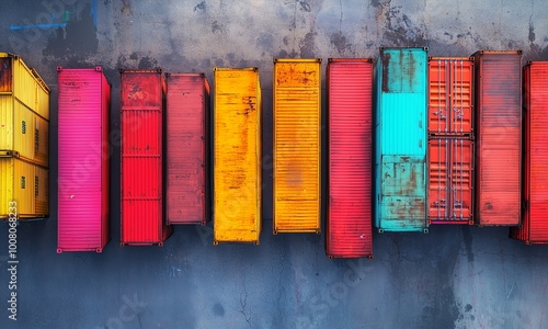 © Sinyeetew, Naklejka premium Aerial View of an Empty Shipping Yard with Stacked Containers