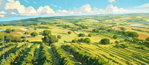 © VRVisionary, Fototapeta premium Aerial view of an expansive oil palm tree plantation