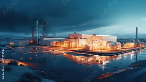 Fototapeta premium Aerial view of an industrial area with warehouses.