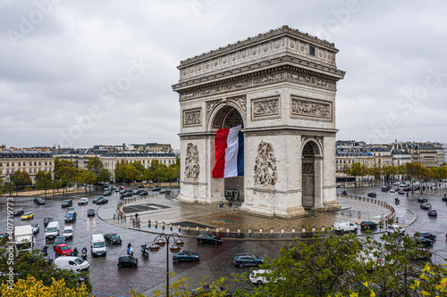 © Eric Isselée, Fototapeta premium Aerial view of Arc de Triomphe, Paris