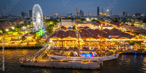 Obraz premium Aerial view of Asiatique The Riverfront open night market at the Chao Phraya...