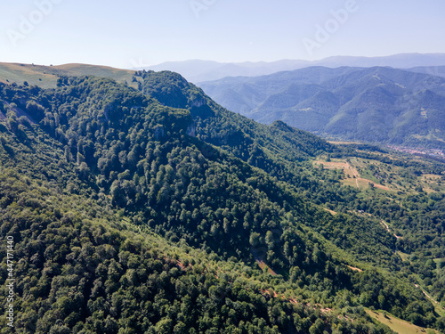 © Stoyan Haytov, Fototapeta premium Aerial view of Balkan Mountain near town of Teteven, Bulgaria
