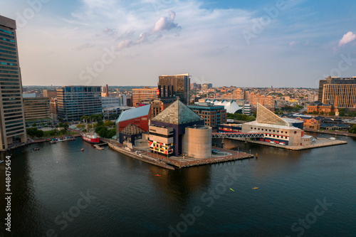 Obraz premium Aerial View of Baltimore City Inner Harbor at Sunset