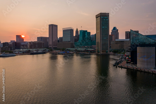 Obraz premium Aerial View of Baltimore City Inner Harbor at Sunset