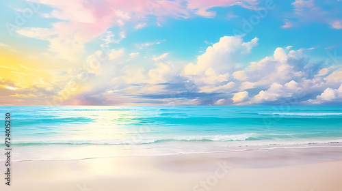 Obraz premium Aerial view of beautiful beach, simple, calm composition in clear blue