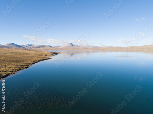 © lzf, Fototapeta premium Aerial view of beautiful lagoon in Tibet,China