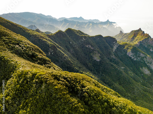 © Curioso.Photography, Fototapeta premium Aerial View of Beautiful Mountains of the Anaga Rural Park in Tenerife, Canary Islands, Spain.