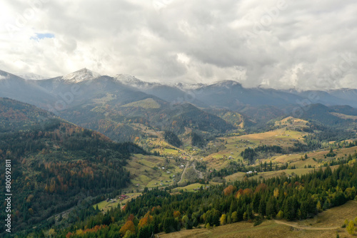 Fototapeta premium Aerial view of beautiful mountains on cloudy day