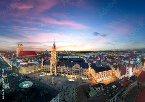 Fototapeta premium Aerial view of beautiful Munich Old Town at sunset
