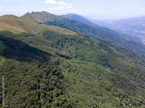 © Stoyan Haytov, Fototapeta premium Aerial view of Belasitsa Mountain, Bulgaria