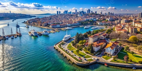 © prapatsorn, Obraz premium Aerial View of Besiktas Port, Istanbul, Turkey - January 3, 2016